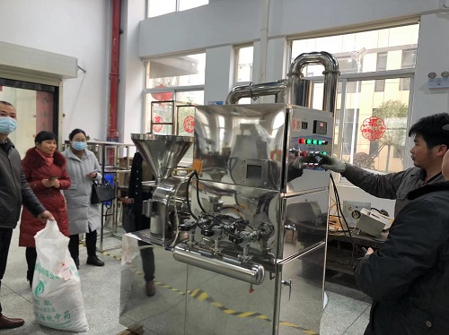 2月16日,益陽市中醫(yī)醫(yī)院一行來我廠參觀交流,總經(jīng)理何靖之、銷售部經(jīng)理陳杰全程陪同。期間,在生產(chǎn)區(qū)用刀片式粉碎機(jī)對其帶過來的物料進(jìn)行了粉碎試機(jī),并對粉碎系列設(shè)備的工藝和使用提出了寶貴的意見,隨后在展區(qū)雙方就設(shè)備配置、使用等方面進(jìn)行了探討。